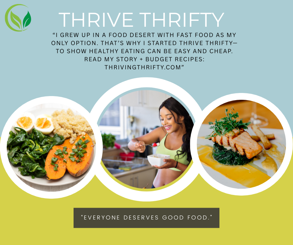 Thrive Thrifty was a brand concept I created for a social media marketing course, designed to address the challenge of healthy eating in food deserts and low-budget households. Based on the project guidelines, I developed the brand identity, target audience profile, messaging pillars, and multi-platform content strategy. The concept focused on delivering affordable recipes, realistic grocery shopping guidance, and educational video content through Instagram, YouTube, Facebook, and Pinterest. The final plan included platform justification, sample posts, visual direction, and a cohesive social strategy to help the brand inspire accessible, budget-friendly nutrition.